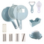4x Klingen, 1x Behälter, 1x Handschutz, 1x Abtropfkorb, 1x Hobel, 1x Ei-Teiler, 1x Reibe, 1x Schälmesser, 1x Klingenetui |